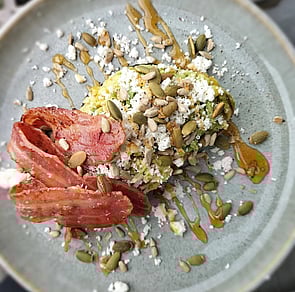 Sourdough topped with avocado, crumbled feta, roasted seeds & a drizzle of honey // 1 Piece $16 or Double $21
