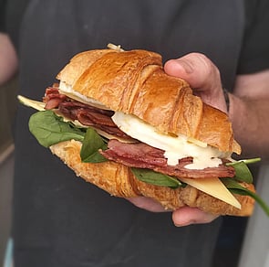 Crispy bacon, fried egg and a slice of cheddar topped with hollandaise // $18
